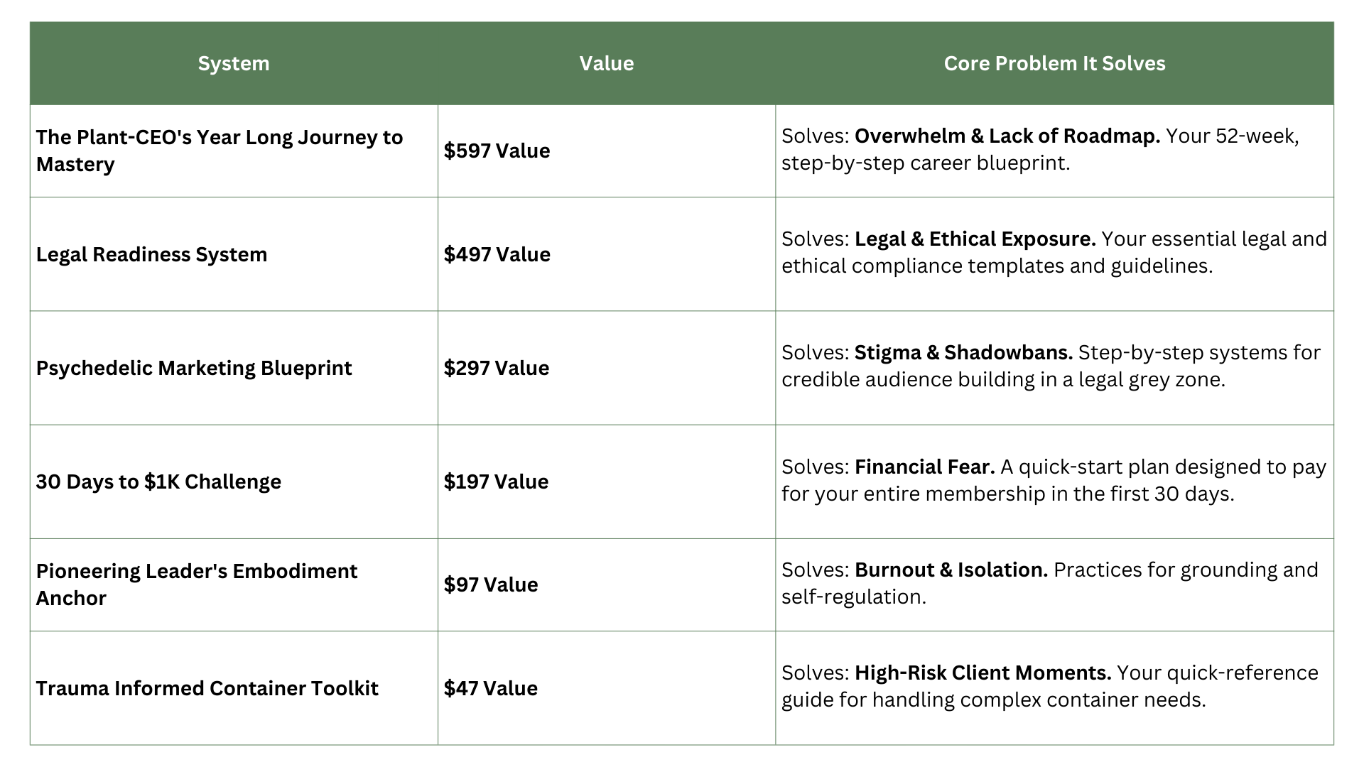 When you commit to the Plant-Ceo Mastery CircleĀ Annual Tier for the Founder's Rate of $190/year (regular $270/year), you instantly unlock two 1:1 business coaching calls with Dee (first ten people), and the $1,732 Professional Pioneer Vault. This bundle of 6 high-value, comprehensive systems is designed to future-proof your business and protect your integrity.